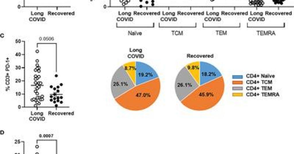 In dieser Studie haben wir die Nützlichkeit verschiedener demografischer, klinischer und immunologischer Parameter als diagnostische Biomarker für Long-COVID in einer Kohorte spanischer Personen untersucht, die nach 49 Wochen nach der Infektion Anzeichen und Symptome dieses Syndroms aufwiesen, im Vergleich zu Personen, die sich in den ersten 12 Wochen nach der Infektion vollständig erholt hatten. Wir stellten fest, dass Personen mit Long-COVID signifikant erhöhte Werte an funktionellen Gedächtniszellen mit hoher antiviraler zytotoxischer Aktivität aufwiesen, wie CD8+ TEMRA-Zellen, CD8±TCRγδ+-Zellen und NK-Zellen mit CD56+CD57+NKG2C+-Phänotyp. Die Persistenz dieser langlebigen zytotoxischen Populationen wurde durch erhöhte Werte von CD4+ Tregs und die Expression des Erschöpfungsmarkers PD-1 auf der Oberfläche von CD3+ T-Lymphozyten unterstützt. Anhand dieser Immunparameter und signifikanter klinischer Merkmale wie Lethargie, pleuritische Brustschmerzen und dermatologische Verletzungen sowie demografischer Faktoren wie weibliches Geschlecht und Blutgruppe O+ sagte ein Random-Forest-Algorithmus die Zuordnung der Teilnehmer zur Long-COVID-Gruppe mit 100 %iger Genauigkeit voraus. Die Definition der genauesten diagnostischen Biomarker könnte hilfreich sein, um die Entwicklung von Long-COVID zu erkennen und die klinische Behandlung dieser Patienten zu verbessern.
